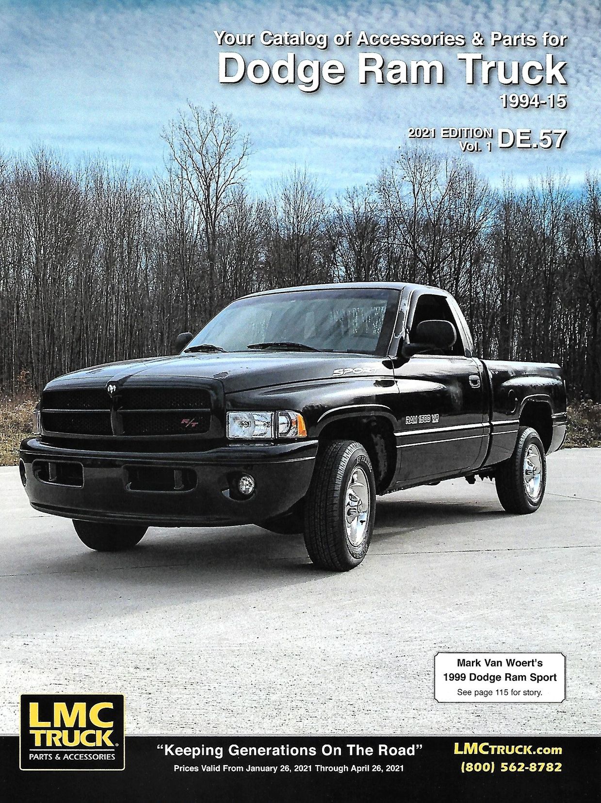 Mark's vintage 1999 Dodge RAM Sport not only had a write up in the 2021 Edition Vol 1, DE. 57 issue of the LMC Truck Catalog, but it also made the cover! After showing friend Stacey David, Master Fabricator, and host of Stacey David's GearZ on MavTV, Velocity and Amazon Prime, Stacey