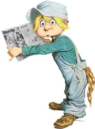CRACKED had a mascot, Sylvester P. Smythe. The Smythe character was referred to as CRACKED's janitor. Unlike Alfred E. Neuman, From MAD magazine, who appears primarily on covers, Sylvester sometimes spoke and was frequently seen inside the magazine, interacting with parody subjects and other regular characters.