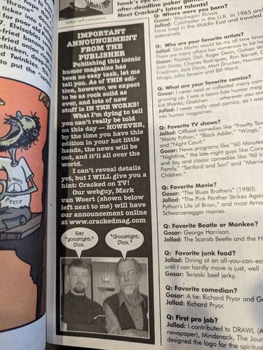 Ultra rare "TOON EDITION" - CRACKED Magazine #357 from July 2002, with Silly CD Trading Cards!